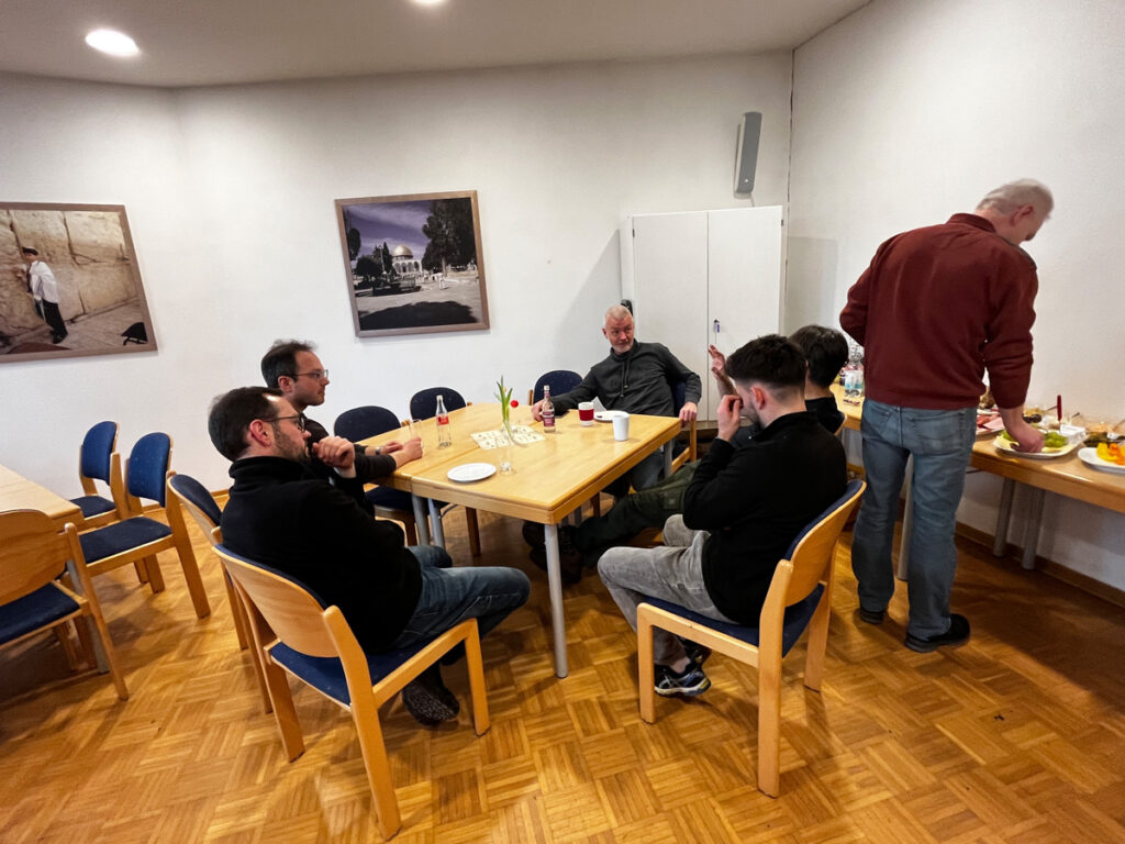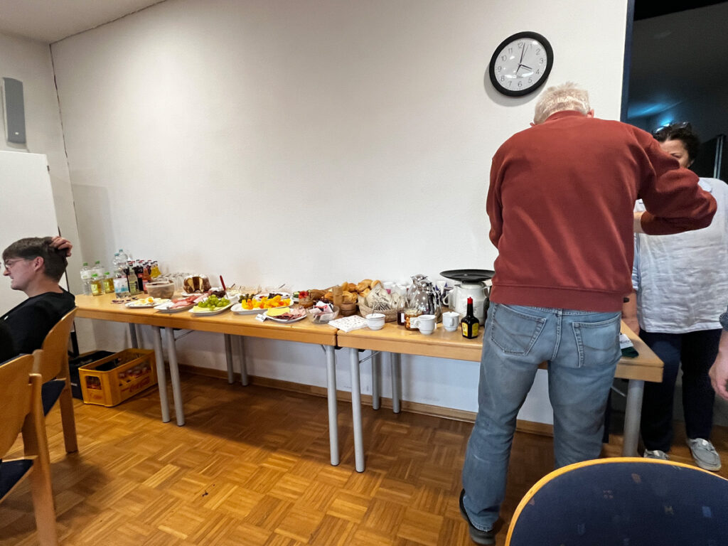Nachdem alle wohlbehalten wieder am Gemeindehaus eingetroffen waren, konnten sie sich an einem fantastischen Imbissbuffet stärken. Eine heiße Suppe, Brötchen, eine Käse- und Wurstplatte und andere Leckereien sowie heiße und kalte Getränke waren vom Versorgungsteam liebevoll vorbereitet worden.